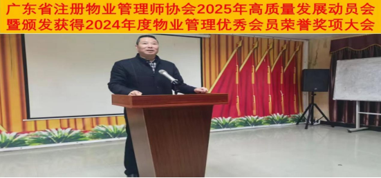 为全面推进广东省注册物业管理师协会工作发展,开局部署谋新篇,明确目标启征程,2025年2月,广东省注册物业管理师协会在深圳召开“2025年高质量发展动员会暨2024年度物业管理优秀会员颁奖项会”并于广州从化举行团建工作。大会由协会执行常务副会长叶国基主持。广东省注册物业管理师协会执行会长卢遂斌、常务副会长兼绿色数智物业联合会、房屋查验联合会会长叶国基、副会长戴广胜、房屋查验联合会执行会长曾滔、协会执行秘书长余永圣、协会副秘书长梁天富、苏达仁等领导出席大会;来自全省会员代表和获奖会员及行业专家及邀请嘉宾参加了大会。与会人员欢聚一堂,凝聚行业共识,谋划实践路径,携手会员并进合作发展共赢。